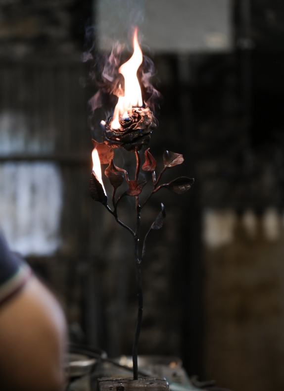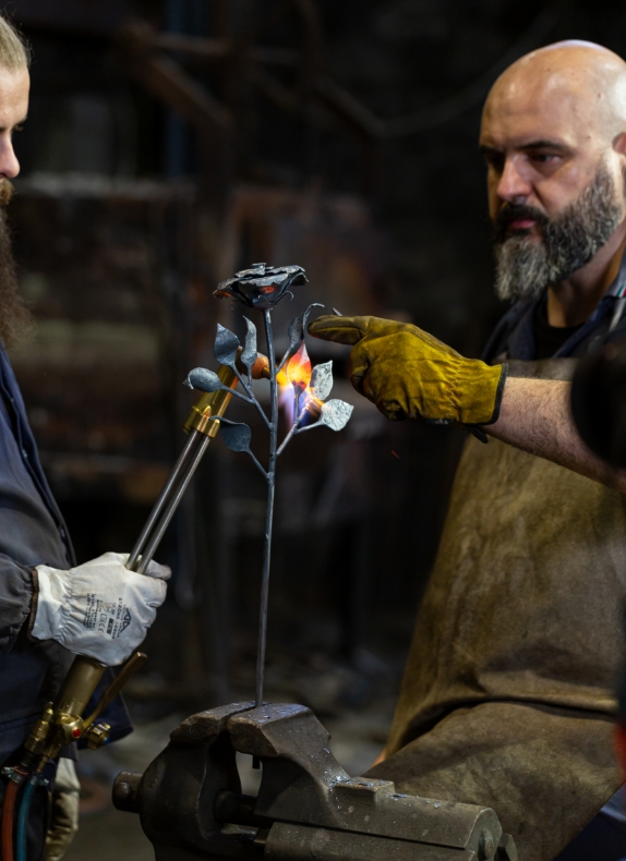 Rose forgiate in una fucina storica nel cuore della Vallecamonica, dove l’arte del ferro battuto è parte della cultura locale da secoli.